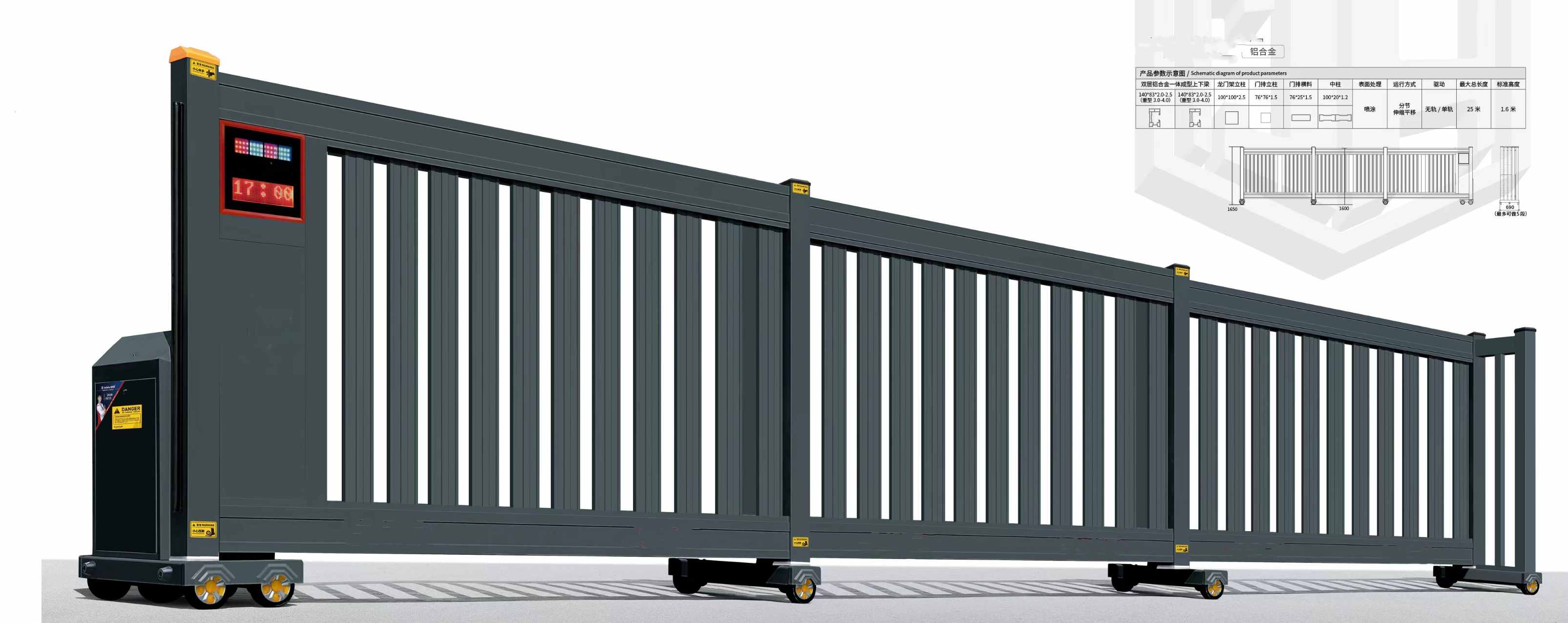 1.4輪驅動:運行快捷、平穩(wěn)、不打滑、牽引力達300N。 2.專用耐磨輪:直徑120mm加大橡膠耐磨輪選用進口PVC材料制作,在30米行程里通過次來回測試,行走輪無明顯磨損可用3-5年時間,由于輪子直徑大,風雨后不影響電動門的正常運行。 …